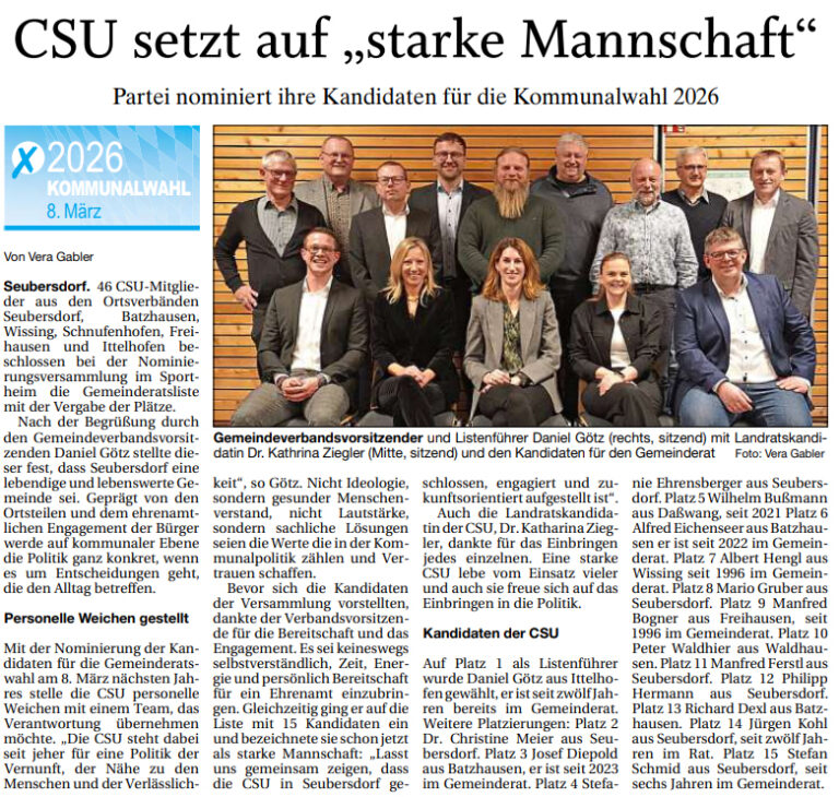 Kommunalwahl 8. März 2026 in Seubersdorf